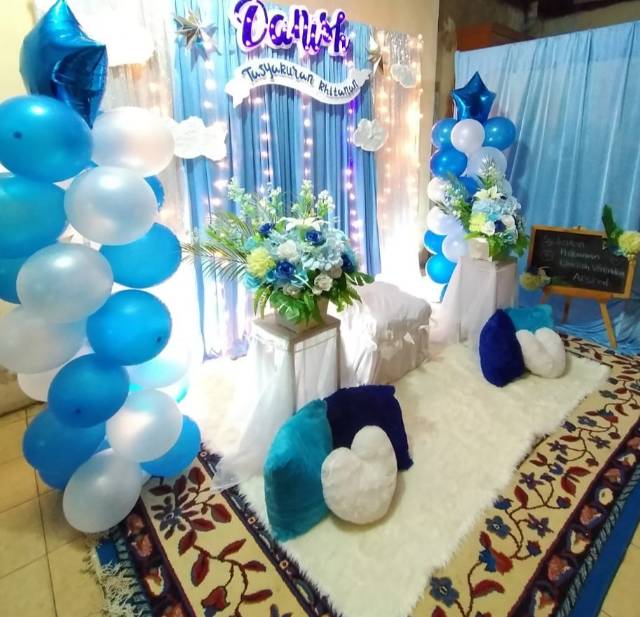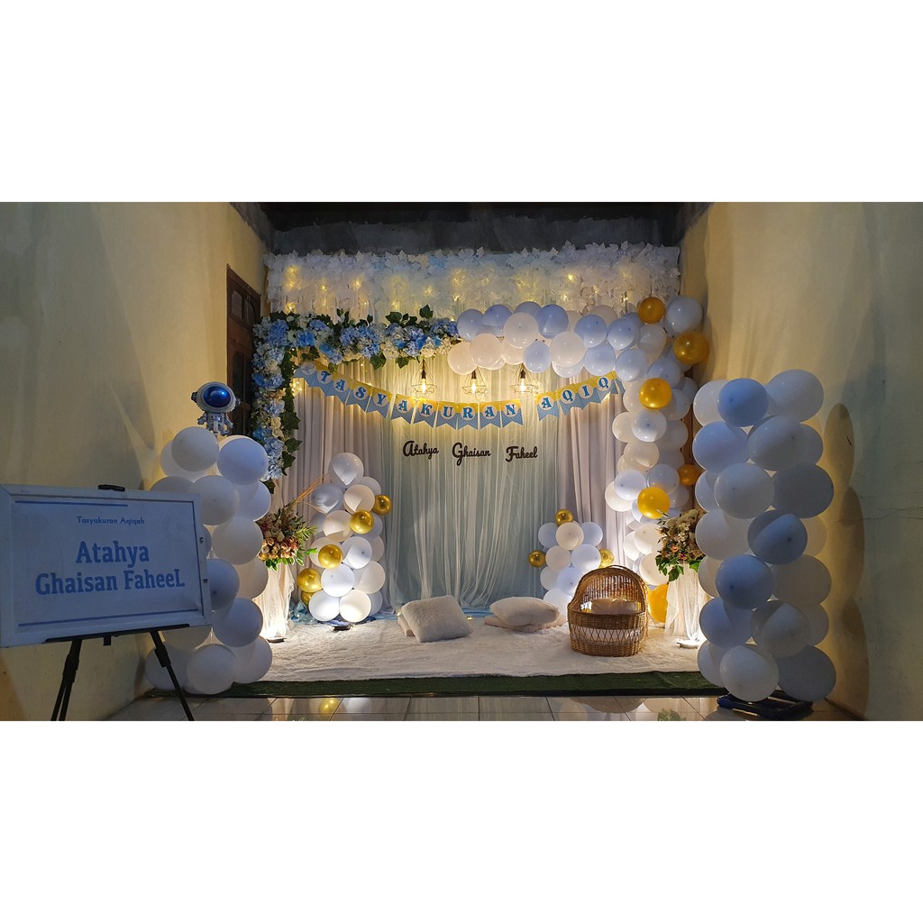 Jual Dekorasi Lamaran Akad Wedding Aqiqah Gawangan Rustic Backdrop White Blue Balon Shopee Indonesia